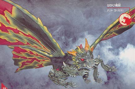 Battra is an energy-spewing armored caterpillar that broke out of its resting place under the polar ice caps. Eventually, however, the caterpillar transforms into a deadly flying form-a kind of dark twin to Mothra.